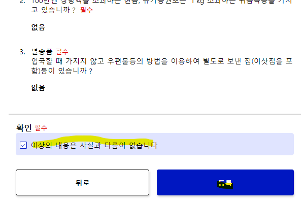 사실과 다름이 없다는 내용을 체크한 후 등록을 클릭합니다. |
